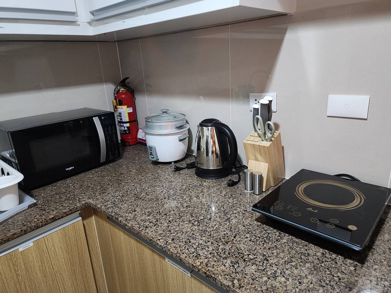 Guests have full private access, including living area, kitchen, balcony, bathroom, and washer. Building Access • Access card for entry, security checkpoints, and elevator • Smart lock for easy self check-in Security & Privacy • Registered guests only • No visitors or unregistered guests